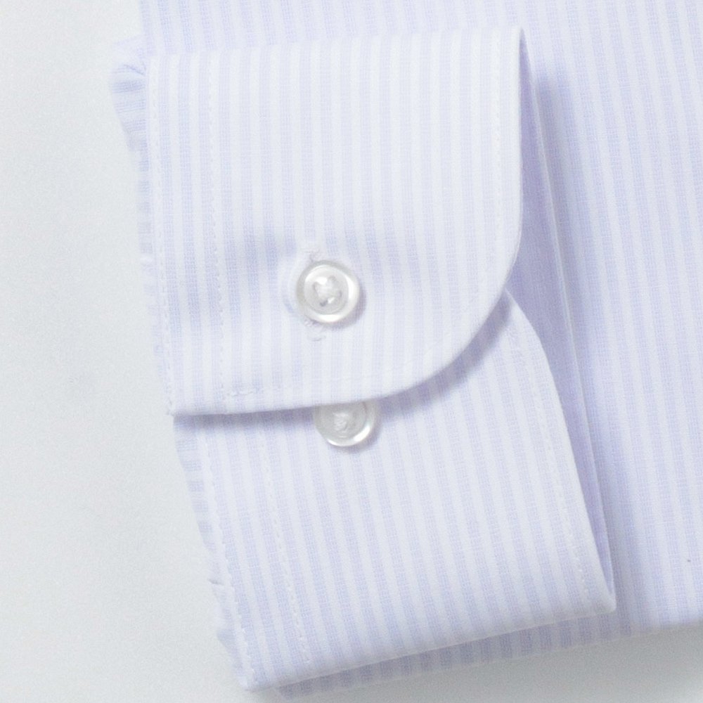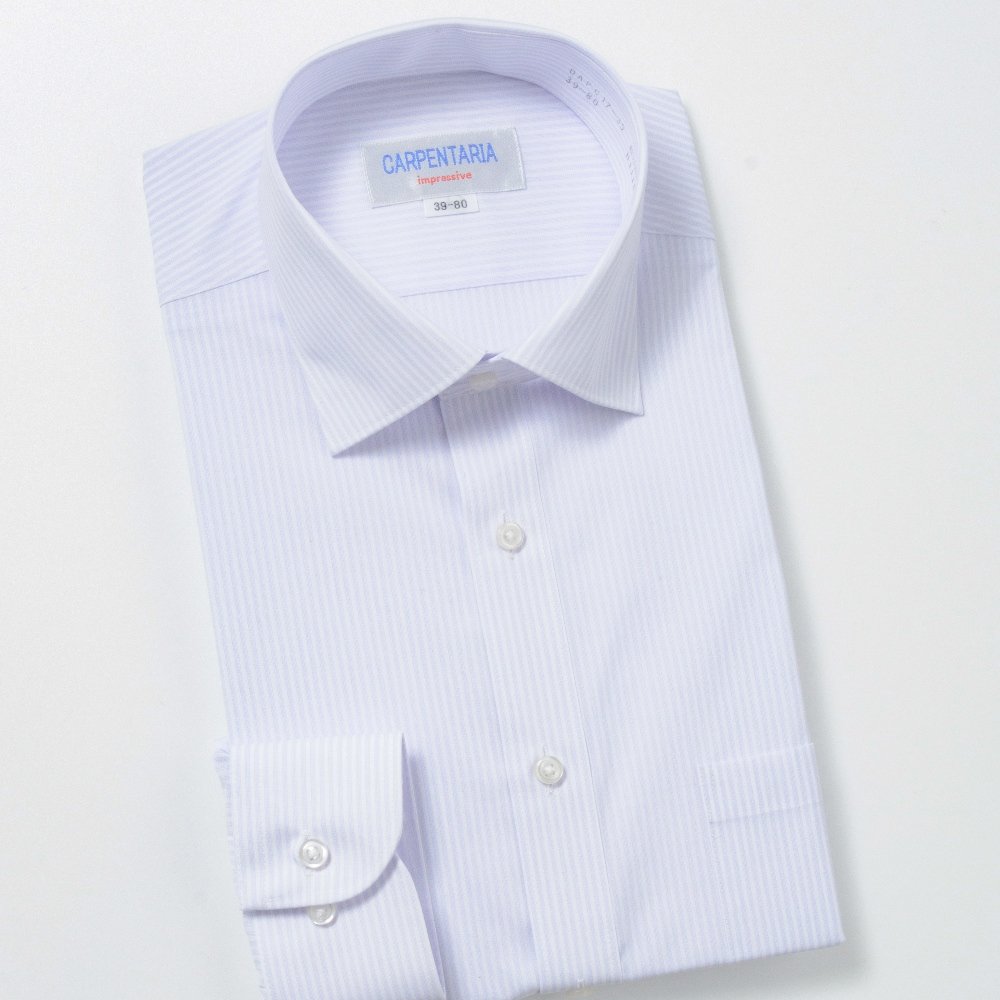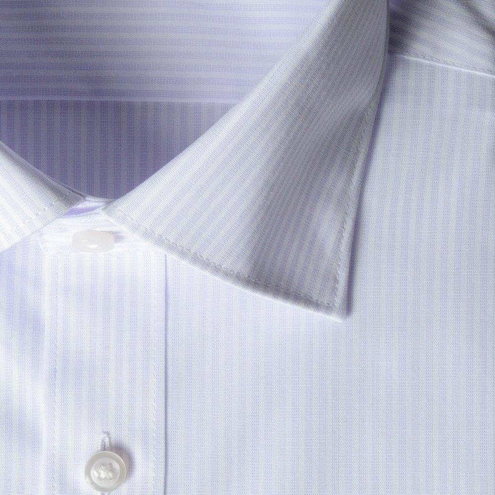 商品説明清涼感のあるライトパープルストライプ。衿は首回りがすっきり見えるセミワイドカラー。 |