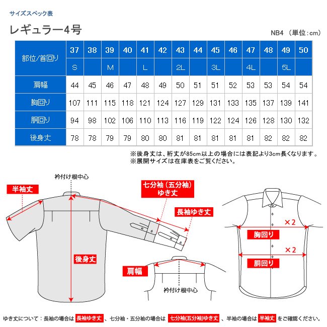 どんなサイズも必ず見つかる!シャツ・ワイシャツの専門店 2cmまでゆき丈詰め無料! |