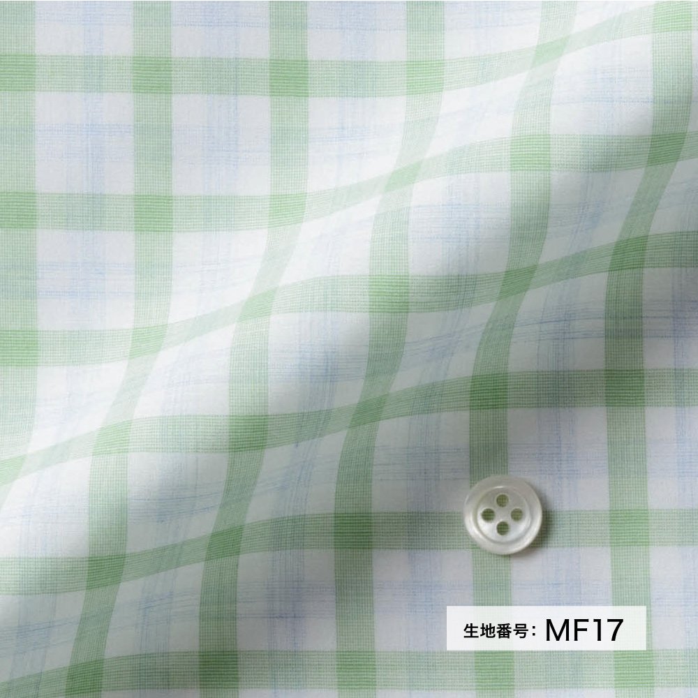 商品説明ホワイトベースグリーン&サックスチェック柄。爽やかな色とやや透け感のある生地で春から夏の着用がおススメです。 |