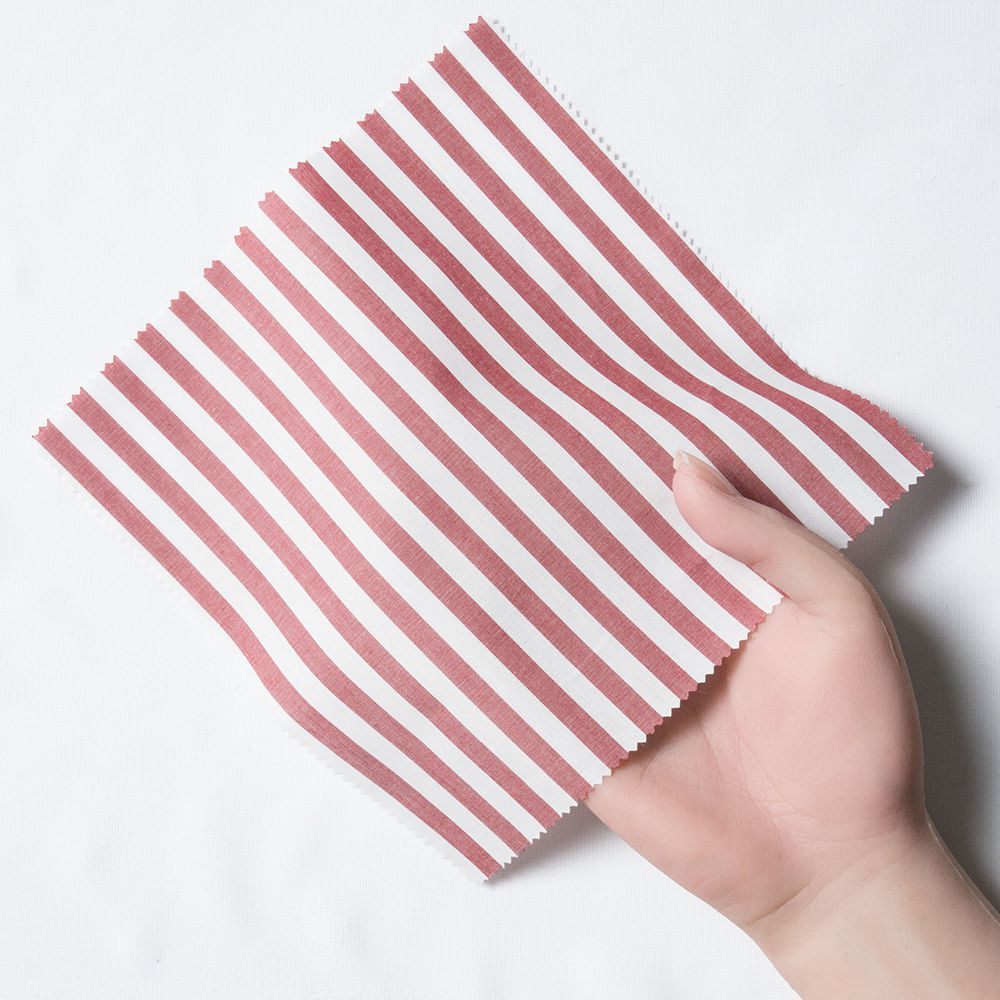 商品説明60番手双糸を使用した綿100%(超長綿)の白×レッドロンドンストライプ生地です。また、ロイヤルソフト仕上げのため、とてもなめらかで優しい肌触りです。 |