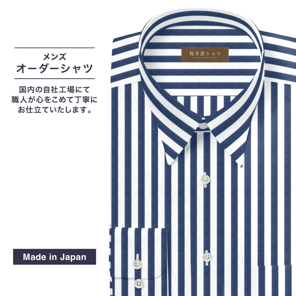 商品説明上品な生地表面感と滑らかな風合いに仕上げた綿100%(超長綿)のブロード素材。80番手双糸を使用した白×ブルーロンドンストライプ生地です。 |