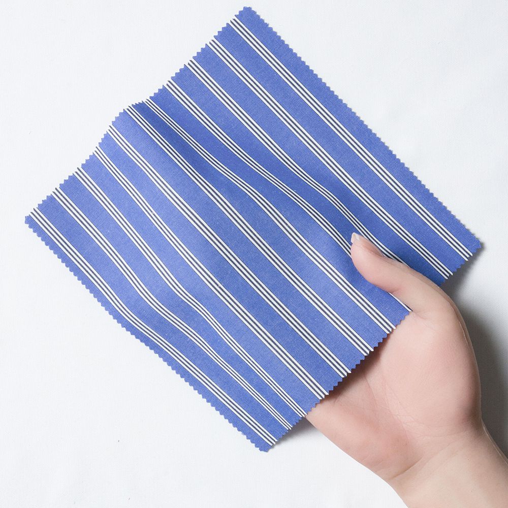 商品説明100番手双糸を使用した綿100%(オーガニックコットン)の白×ブルーストライプ生地です。適度なハリ感がありながら、仕上げに特殊柔軟加工を施す事により滑らかな風合いに仕上げております。 |