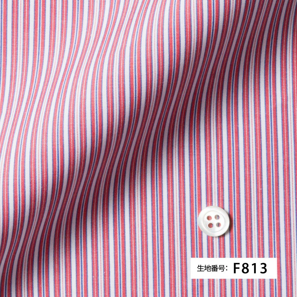 商品説明100番手双糸を使用した白×レッド×ブルーストライプ生地です。綿100%(超長綿)ならでは艶やかな光沢感としなやかな風合いが特徴の素材です。 |