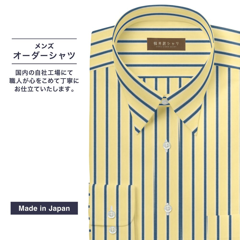 商品説明100番手双糸を使用したイエロー×ブルー×白ストライプ生地です。綿100%(超長綿)ならでは艶やかな光沢感としなやかな風合いが特徴の素材です。部分的にサテンドビー組織を入れ、組織の光沢感と凹凸の有る表面感に織り上げております。 |