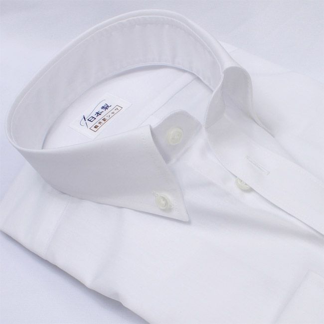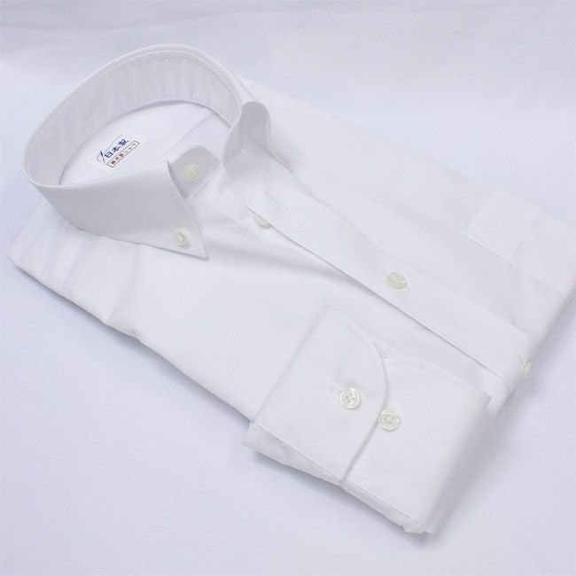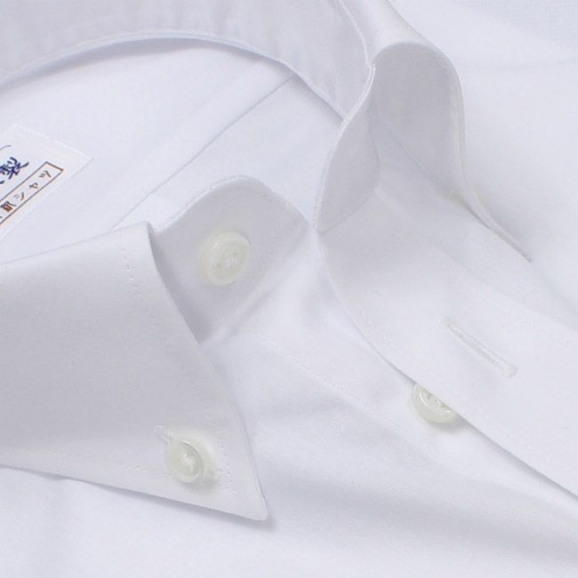 商品説明綿50%ポリエステル50%の形安定加工ホワイトブロードシャツ。衿は少し小ぶりのショートボタンダウンカラーです。 |