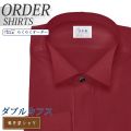 商品説明ポリエステル65%綿35%のレッドのブロードシャツ。衿はウイングカラーでカフスはダブルカフス仕様です。形態安定加工は有りません。釦と穴かがり、釦付け糸を配色使いにしてアクセントを付けています。 |
