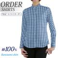 商品説明滑らかな触り心地が気持ち良い綿100%の、ブルーギンガムチェック生地を使用。ホワイト×ネイビーの二層ボタンに、穴篝もホワイト、付け糸にはネイビー糸を使用しました。ボタンが2つ付いたカフスデザインもアクセントに。クラシカルな印象のスタンドカラーはシャツインスタイルを綺麗に演出してくれるオススメアイテムです♪ |
