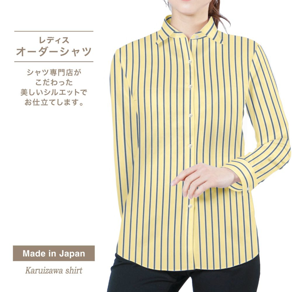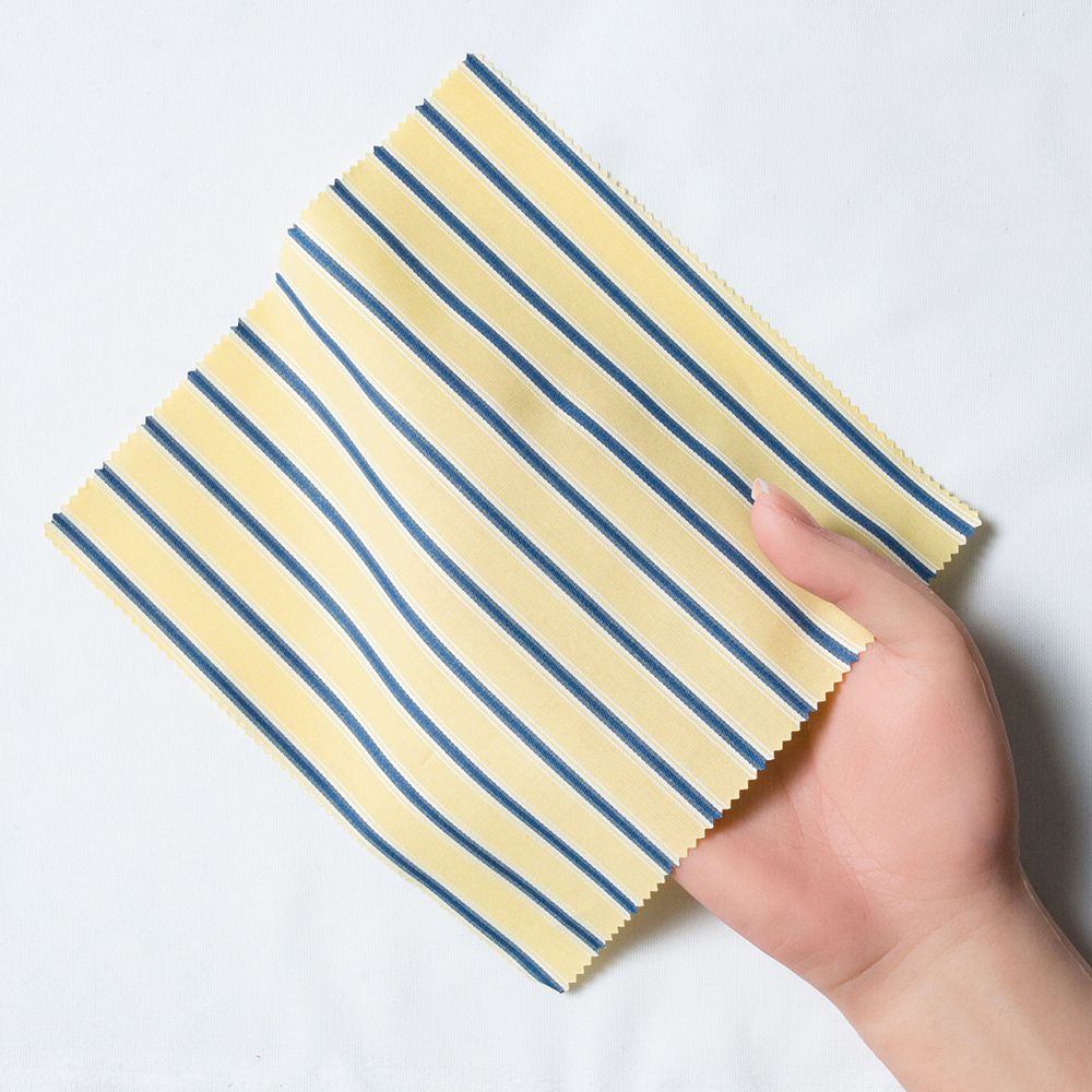 商品説明100番手双糸を使用したイエロー×ブルー×白ストライプ生地です。綿100%(超長綿)ならでは艶やかな光沢感としなやかな風合いが特徴の素材です。部分的にサテンドビー組織を入れ、組織の光沢感と凹凸の有る表面感に織り上げております。 |