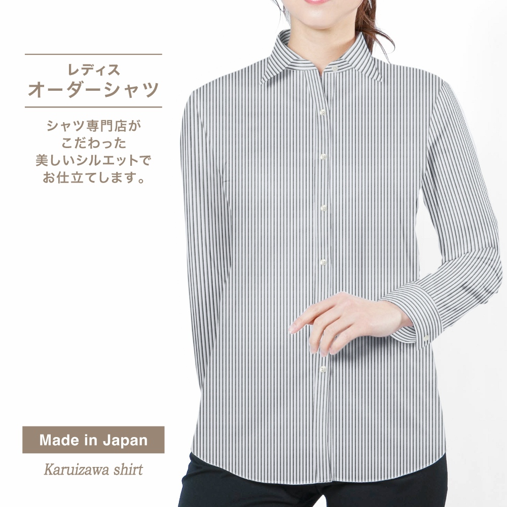 商品説明綿100%素材でありながら、ハイレベルな形態安定性のある素材です。上品な印象のストライプです。 |