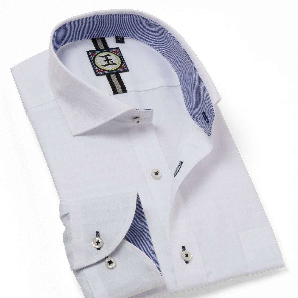 商品説明原泰久氏による日本の漫画作品『キングダム』のキャラクター王賁が率いる「玉鳳隊」をイメージした、ホワイトドビーチェック柄生地のカッタウェイカラーシャツです。右カフス内側に鎧の紋をモチーフにした刺繍、ヨーク内側に「玉鳳隊」の軍旗をあしらったブランドネームとイメージカラーのテープを施しました。白の釦に穴かがり糸、釦付け糸はネイビーを使用しワンポイントに。衿腰内側とカフス内側にバイヤス使いのブルー×ホワイトカルゼの別生地を使用しアクセントに。ほど良いフィット感のボディベースで、ボトムアウトの着用にもおすすめの短め身丈で仕上げました。形態安定性に優れたアイロン掛けのしやすい素材を使用しています。「玉鳳隊」のネクタイと合わせてもスッキリとした着こなしになるアイテムです。 |
