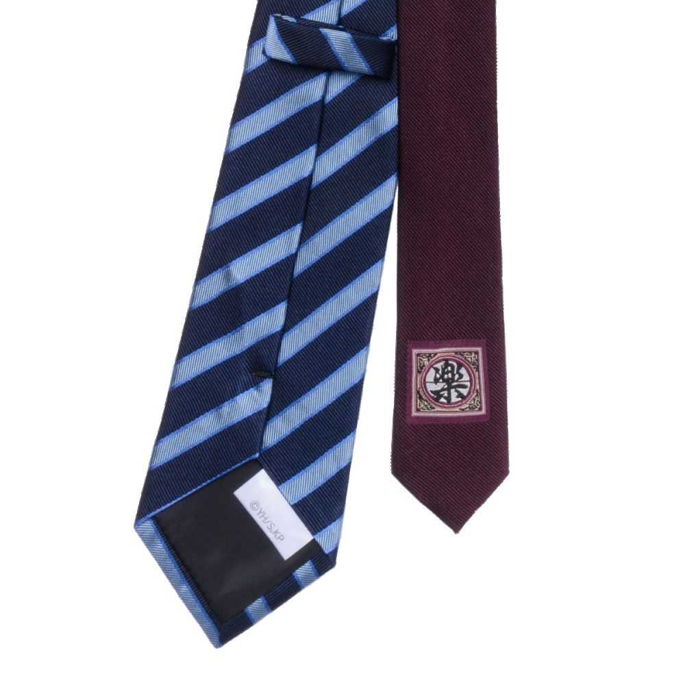 商品説明原泰久氏による日本の漫画作品『キングダム』のキャラクター、「楽華隊」をイメージしたネクタイです。大剣はネイビー×ブルー濃淡ストライプ、小剣はワインレッド無地の別色の剣先に「楽華隊」の軍旗『楽』のモチーフ刺繍を施しました。シャツとのコーディネートだけでなく、チラリと見える小剣がアクセントとなり、ソックスの色と合わせたり、シンプルになりがちなスーツスタイルのコーディネートが広がり、おすすめのアイテムです。 |