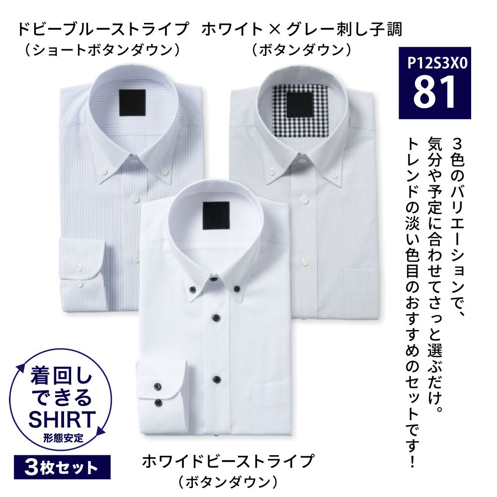 ワイシャツ[PLATEAU] お得な3枚セット 形態安定 標準型 P12S3X081