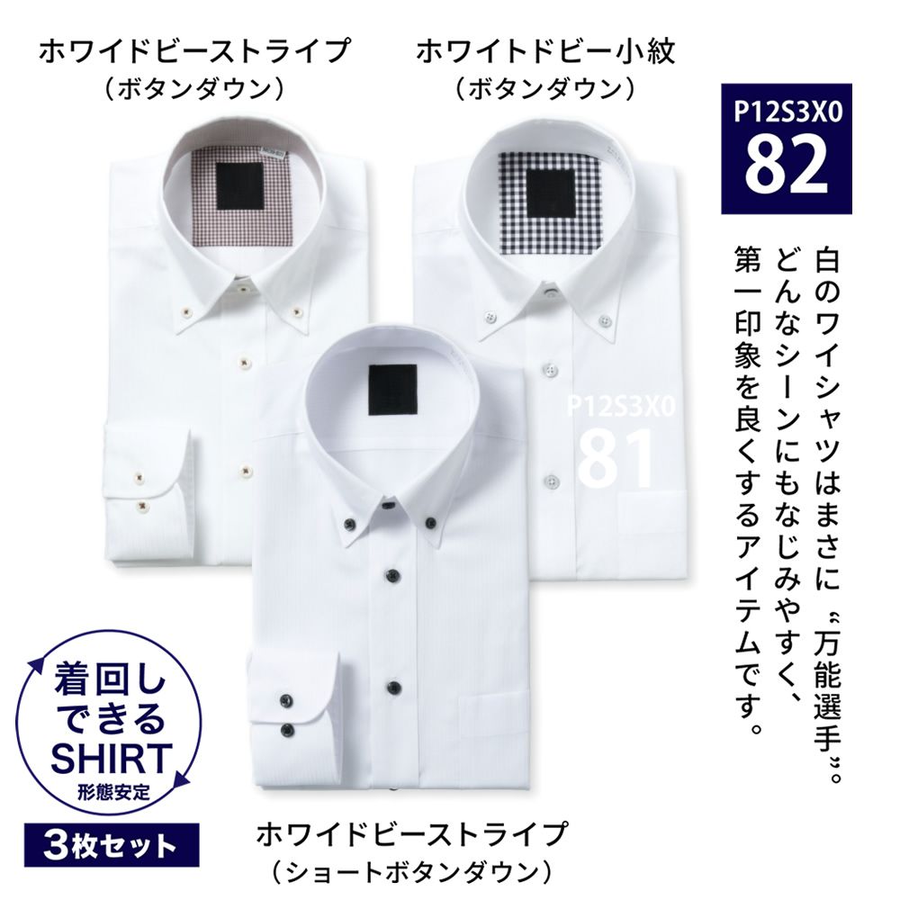 ワイシャツ[PLATEAU] お得な3枚セット 形態安定 標準型 P12S3X082