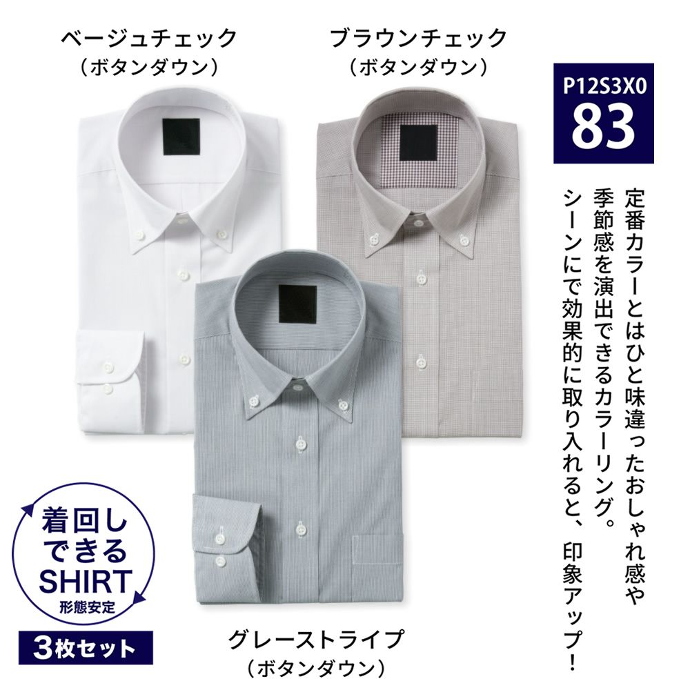 ワイシャツ[PLATEAU] お得な3枚セット 形態安定 標準型 P12S3X083