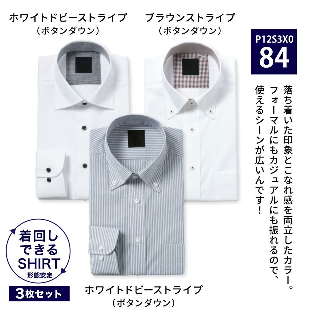 ワイシャツ[PLATEAU] お得な3枚セット 形態安定 標準型 P12S3X084