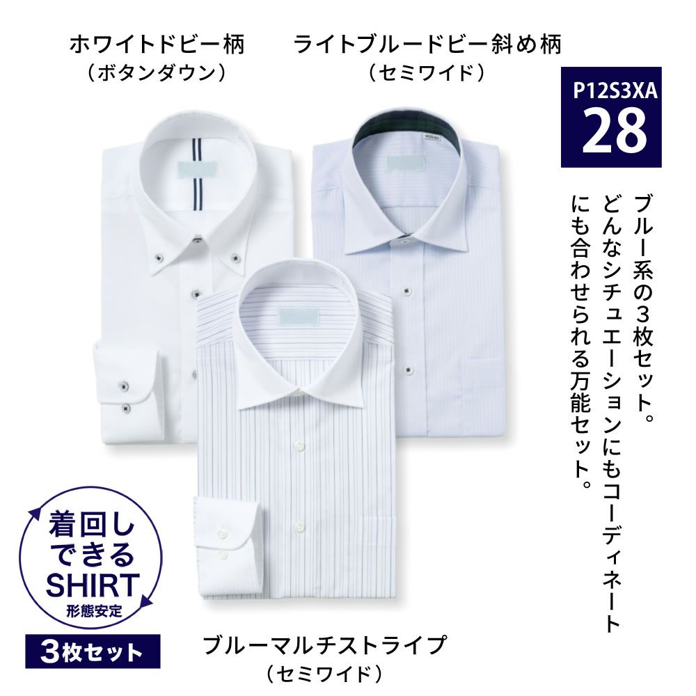 ワイシャツ[PLATEAU] お得な3枚セット 形態安定 スリム型 P12S3XA28