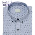 商品説明温かみあふれるライトブルー地ブルー飛び柄ボタンダウンシャツです。カジュアルな裾を出したスタイルにぴったりな短めの着丈を採用しています。袖付け本縫い・脇縫い二本針縫製です。 |