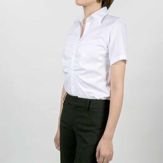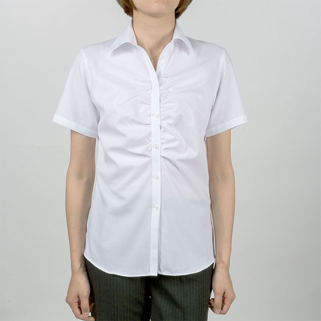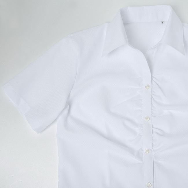 商品説明暑い夏にひんやり気持ちい接触冷感シャツ。ホワイトドビーダイヤ柄生地に、衿型は涼しげなスキッパーを使用。胸元にギャザーの入った女性らしいデザインです。UVカットで夏場の強い紫外線からお肌を守ります。暑い夏のビジネスシーンにぴったりな爽やかなデザインシャツはいかがでしょうか。アイロン掛けのしやすい形態安定なので日常使いとして使いやすいアイテムです。 |