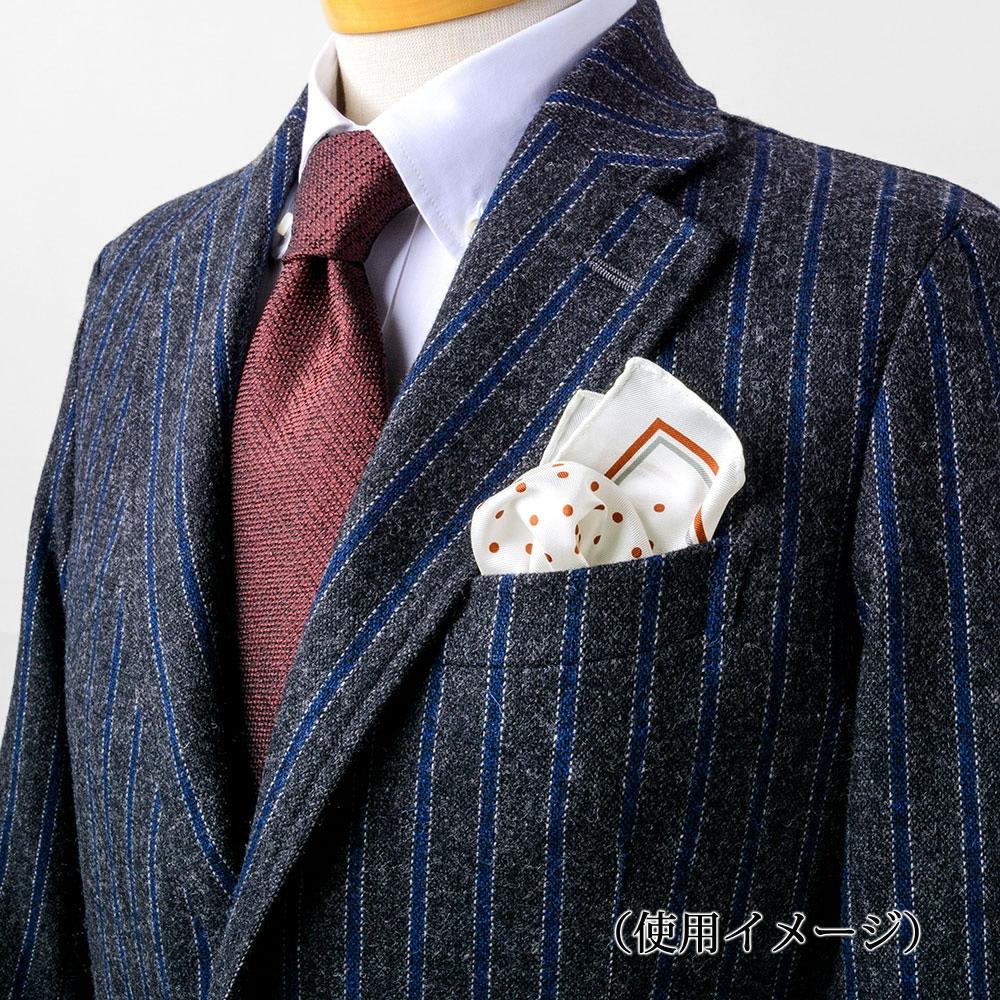 商品説明ホワイト地レッドドット柄をグレーとレッドで縁取ったポケットチーフです。滑らかな素材が特徴的なシルクのポケットチーフはフォーマルスタイルに最適。格式高い結婚式、少しカジュアルな二次会などの装いを華やかに彩ります。 縦33cm×横33cm 日本製 |