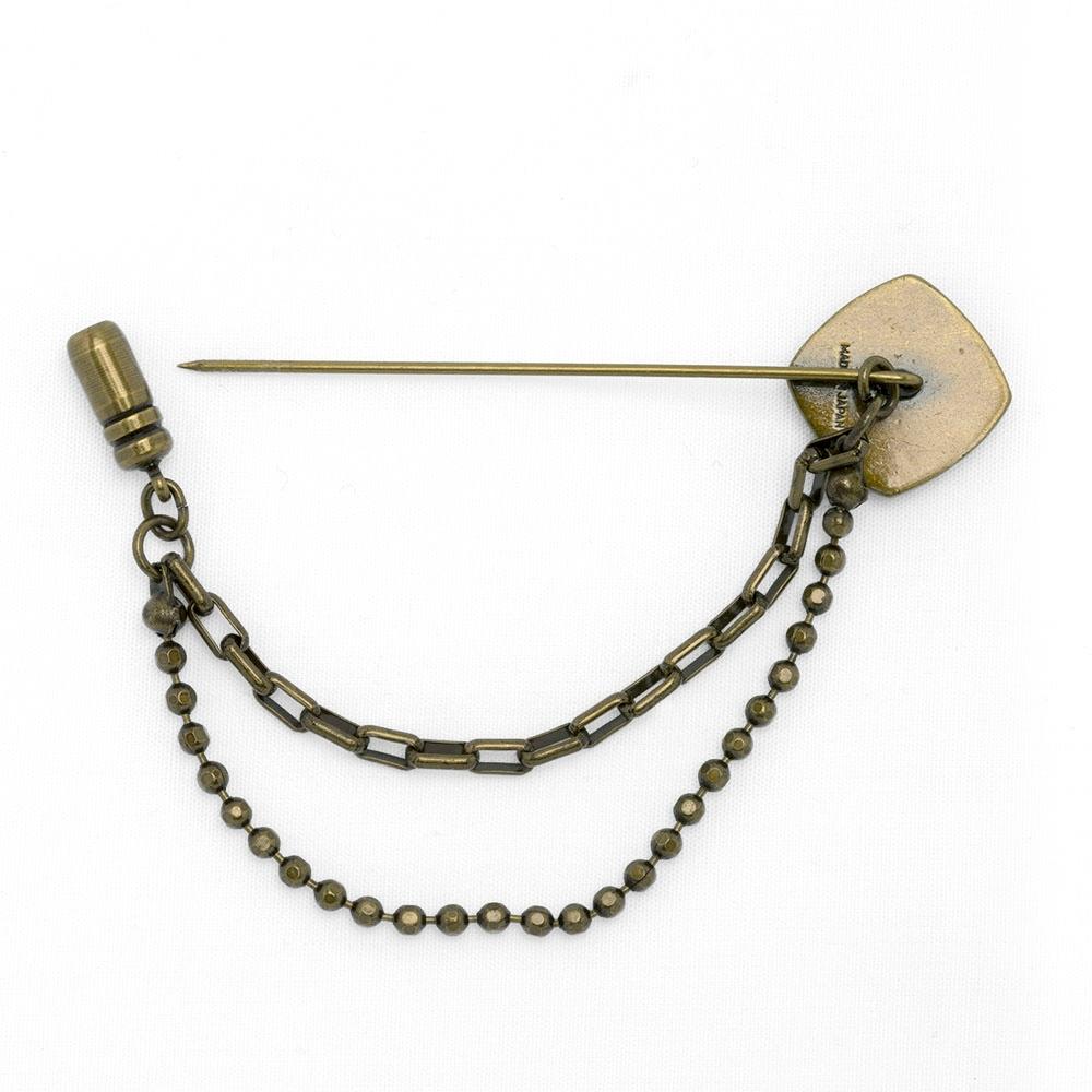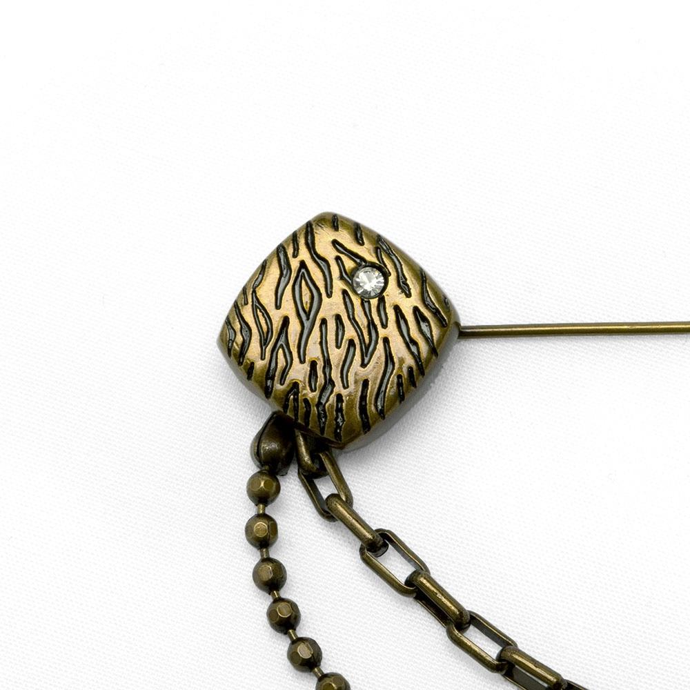 商品説明一粒のストーンをあしらったスクエアモチーフのスティック型ラペルピンです。チェーンのついたデザインでラペルの縁をお洒落に彩ります。留め具がチェーンに繋がっているので留め具をなくす心配もありません。大きさ:縦 約65mm×横 約17mm【日本製】 |