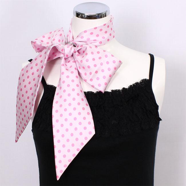 商品説明首元を華やかに彩る、レディスタイです。首元に巻くだけでコーディネイトのアクセントに。ピンクのドット柄はポップな印象を与えます。。結び方を変えるだけでも印象も変えられる、おすすめアイテムです。(写真に使われているリングは付属しません。) |