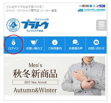 トップページ上部のメニュー『ログイン』を選択します。ログイン画面が開きます。