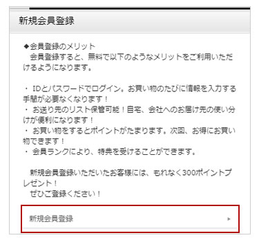 新規会員登録時に300ポイントを付与いたします。はじめてのお買い物からお得にお買い物をお楽しみいただけます。
