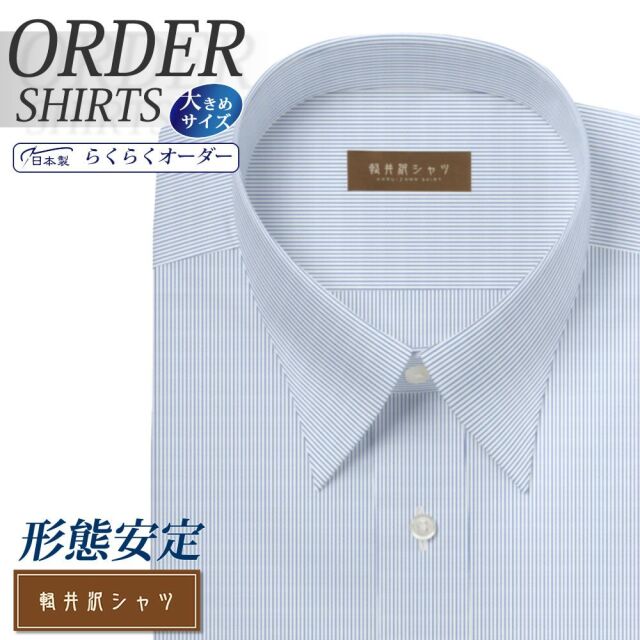 ワイシャツ大きいサイズ[軽井沢シャツ] 自由に衿型を選べる 白場ブルーピンストライプ 形態安定 受注生産 E10KZR518X