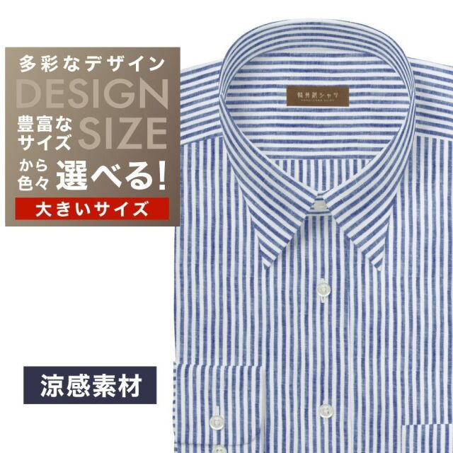 ワイシャツ大きいサイズ[軽井沢シャツ] 自由に衿型を選べる 麻100% 涼感素材 ネイビーストライプ 受注生産 E10KZR861X