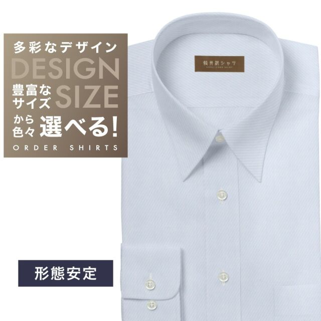 ワイシャツ[軽井沢シャツ] 自由に衿型を選べる サックスドビーカルゼ 形態安定 ・防汚加工 形態安定 らくらくオーダー E10KZR865
