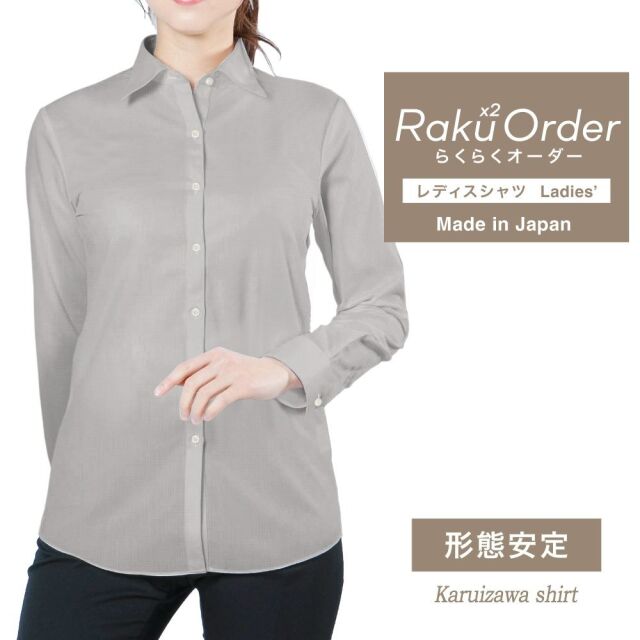 • レディース[軽井沢シャツ] 自由に衿型を選べる ホワイト×ブラウンマイクロチェック E30KZAF90
