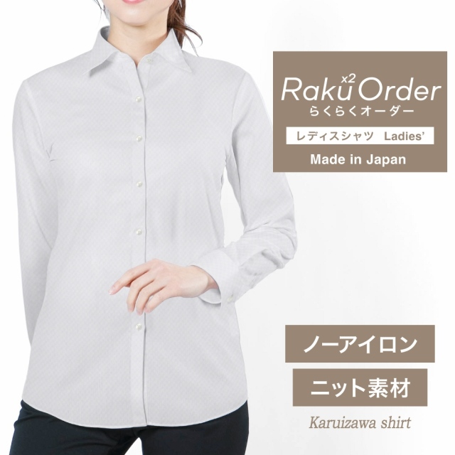 • レディース[軽井沢シャツ] 自由に衿型を選べる 淡パープル格子柄・ニット・形態安定・吸水速乾 E30KZAH48