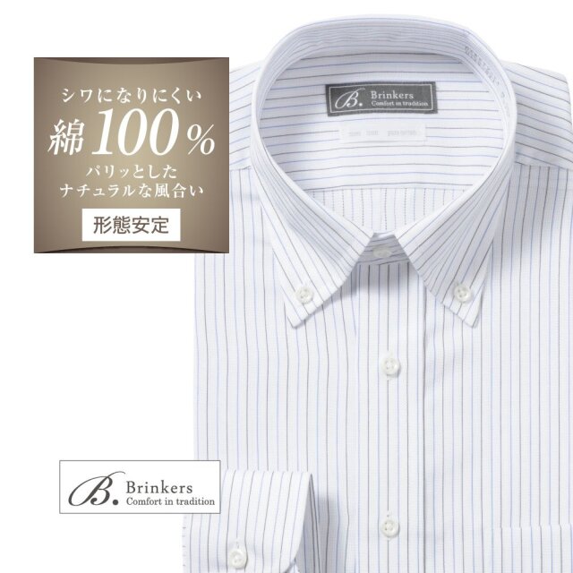 ワイシャツ[Brinkers] ボタンダウン 純綿 本格縫製 ボックスプリーツ(ループ有) 形態安定 標準型 P12BKB006