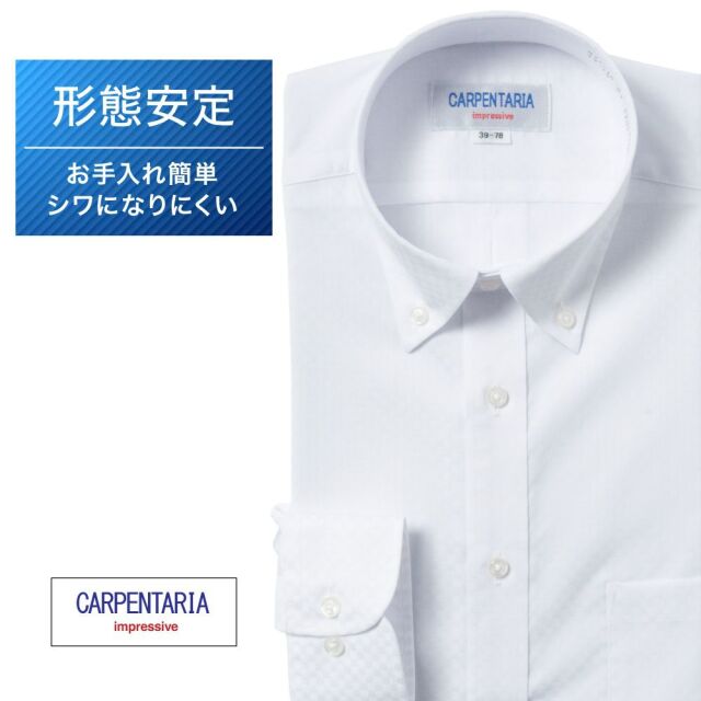 ワイシャツ[CARPENTARIA] ボタンダウン ホワイト ドビー 市松模様 形態安定 標準型 P12CAB403
