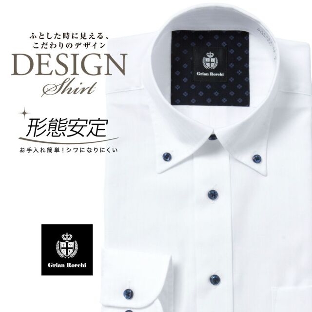 ワイシャツ[GrianRorchi] ボタンダウン ホワイトドビーストライプ 別生地 形態安定 標準型 P12GRB340