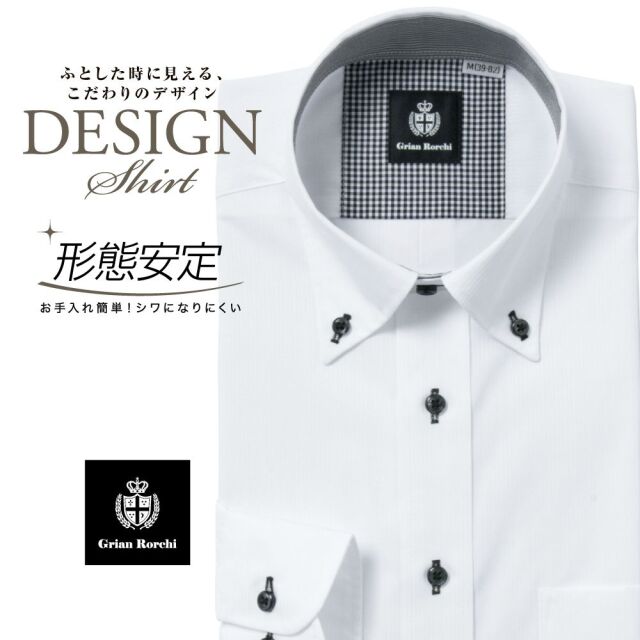 ワイシャツ[GrianRorchi] ボタンダウン ホワイトドビーストライプ 別生地 形態安定 標準型 P12GRB341