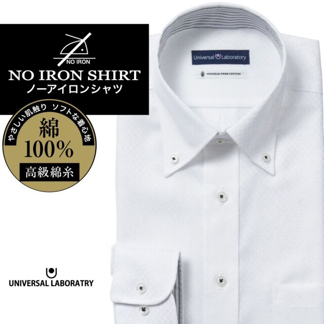 ワイシャツ[UNIVERSAL LABORATORY] ボタンダウン ノーアイロン ホワイトドビーチェック 形態安定 標準型 P12ULB247
