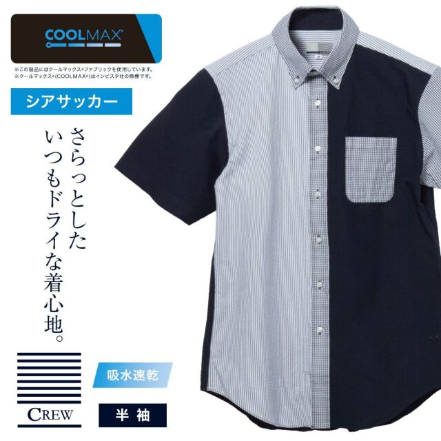 半袖カジュアルシャツ[CREW] ボタンダウン 袖付け本縫い脇二本針 サッカー ストライプ チェック クレイジーシャツ標準型 P17CWB059