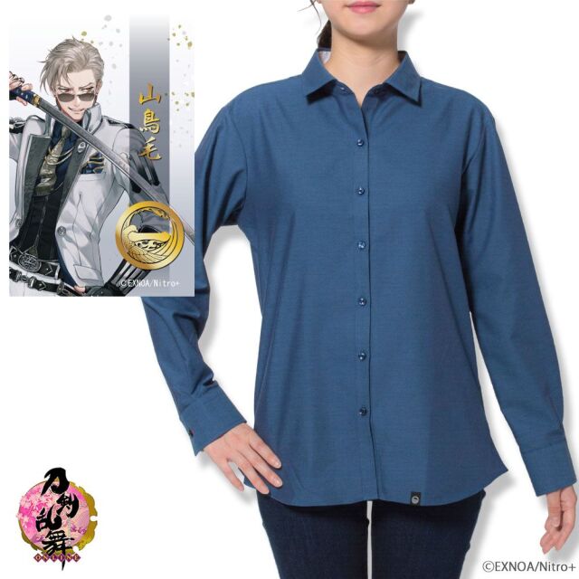 レディース[刀剣乱舞ONLINE] ショートワイドカラー 落ち着いたブルー無地 (山鳥毛) ゆったり型 PATN03-02